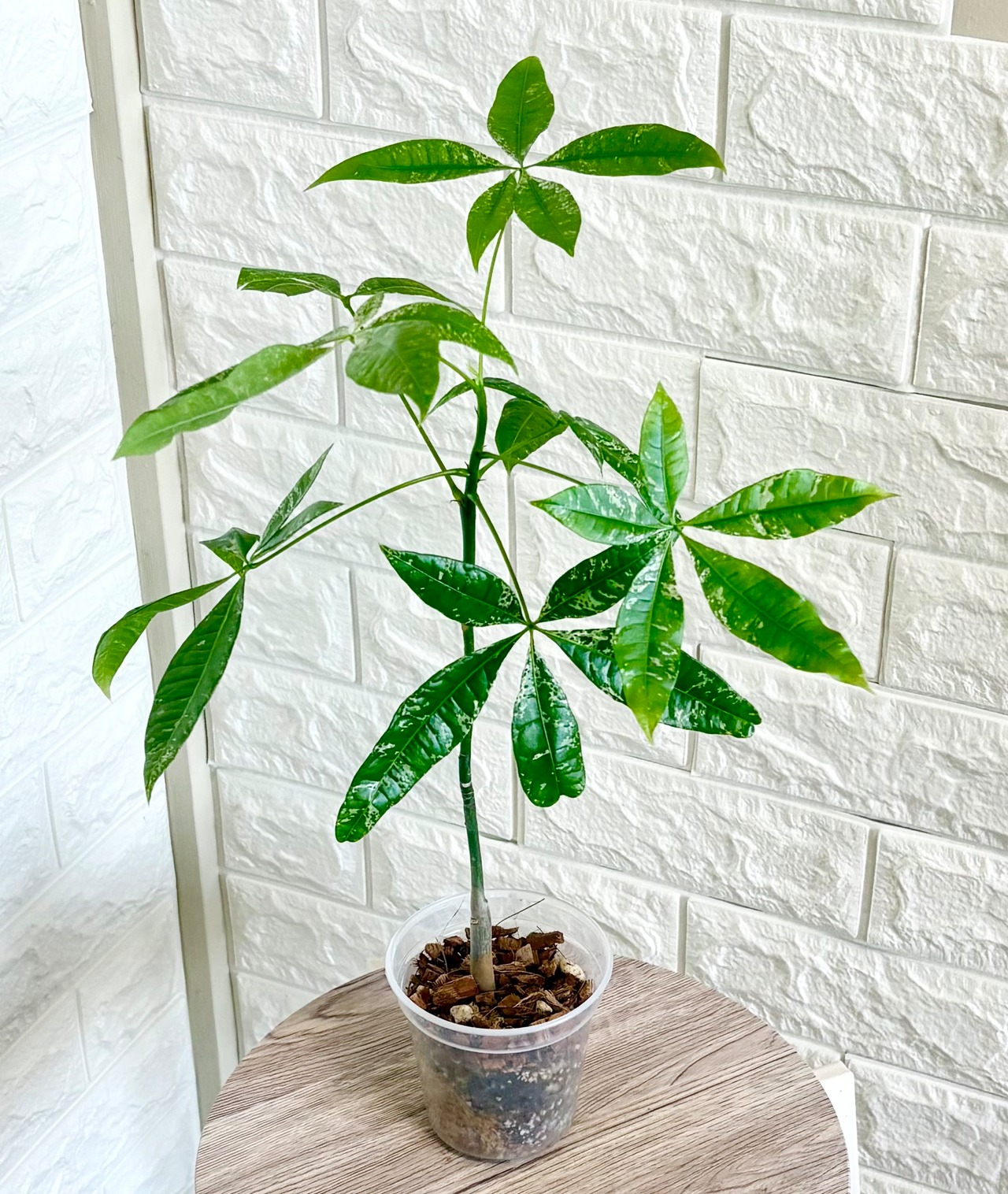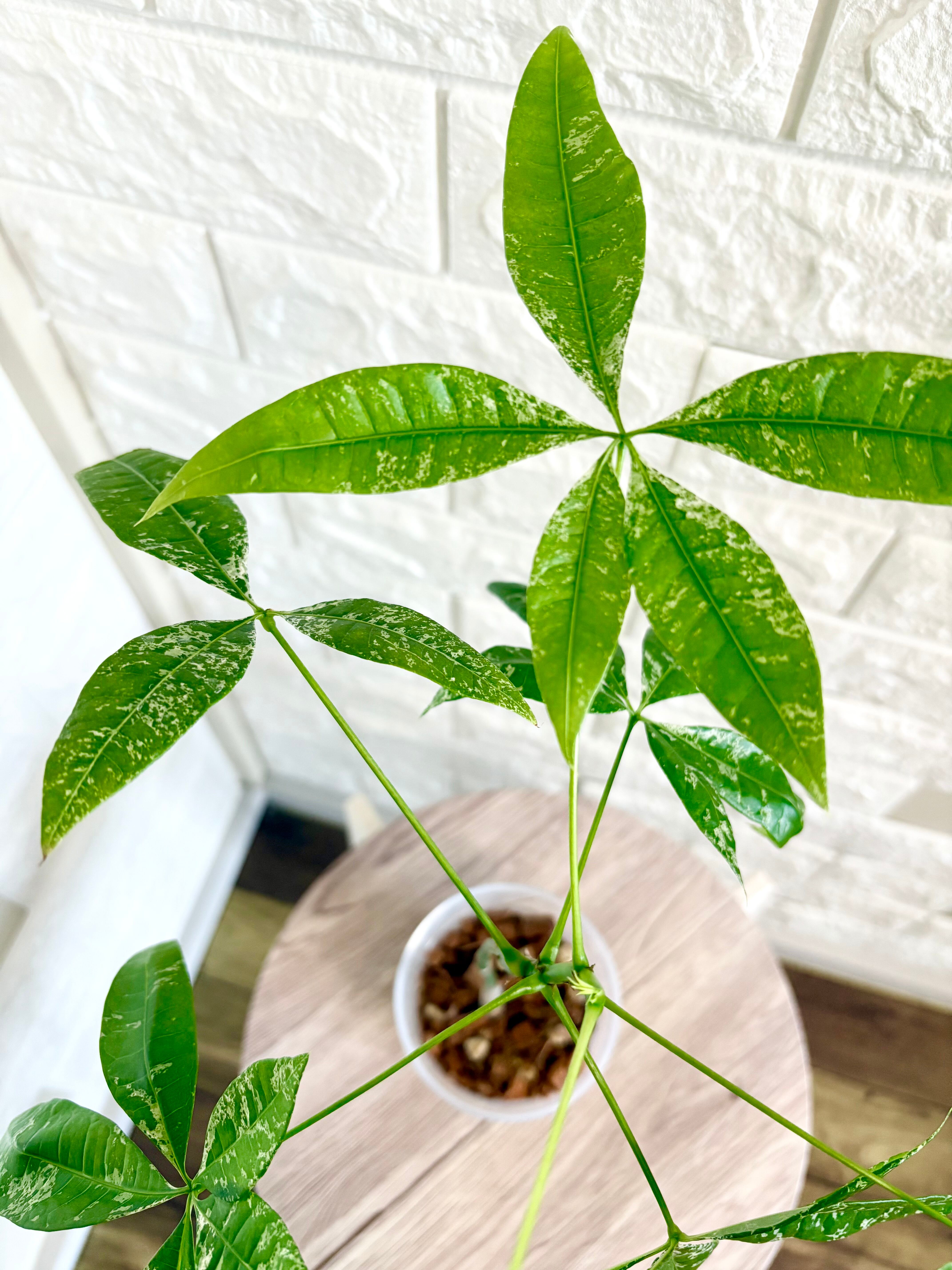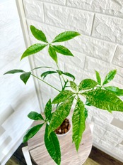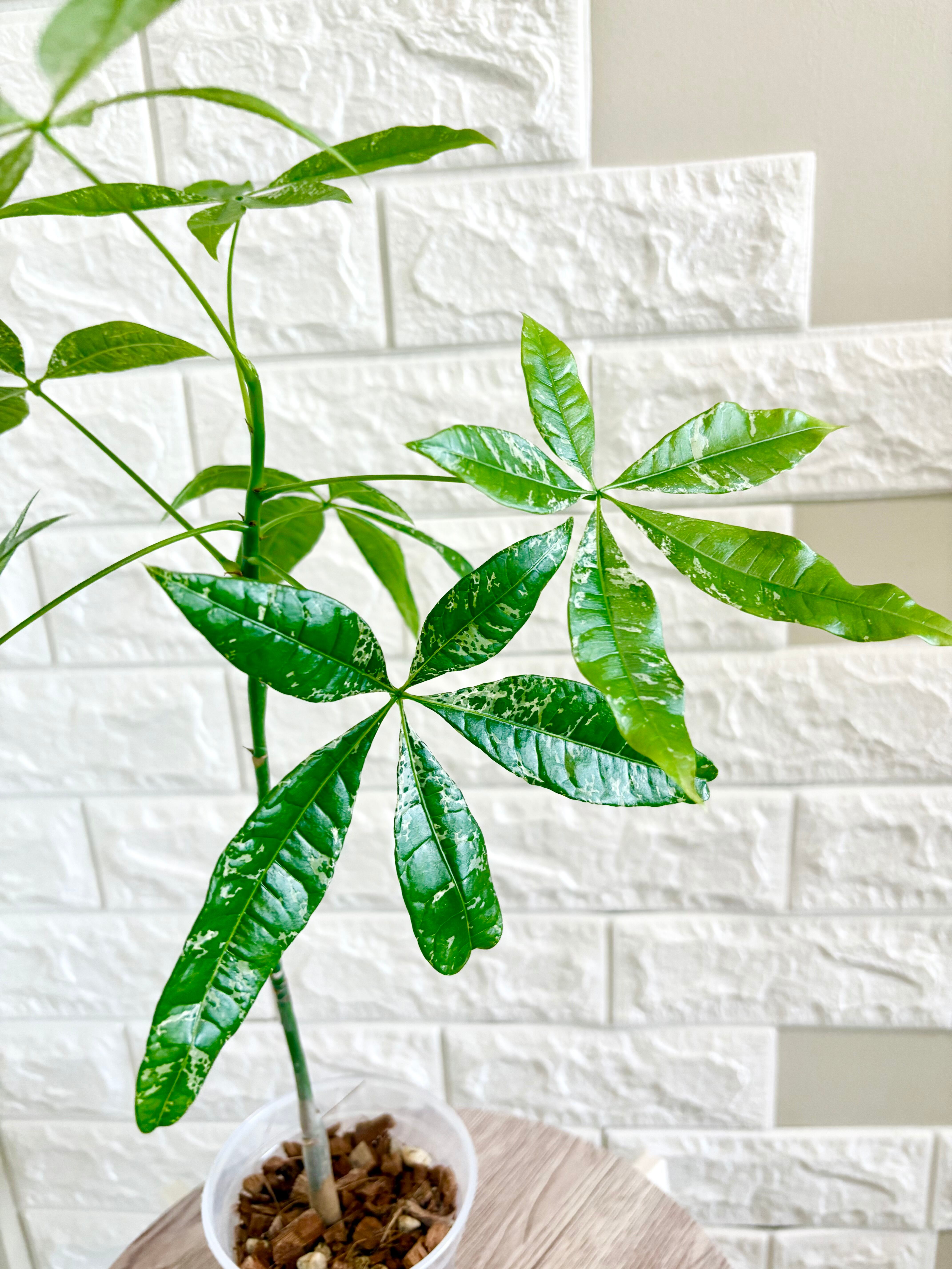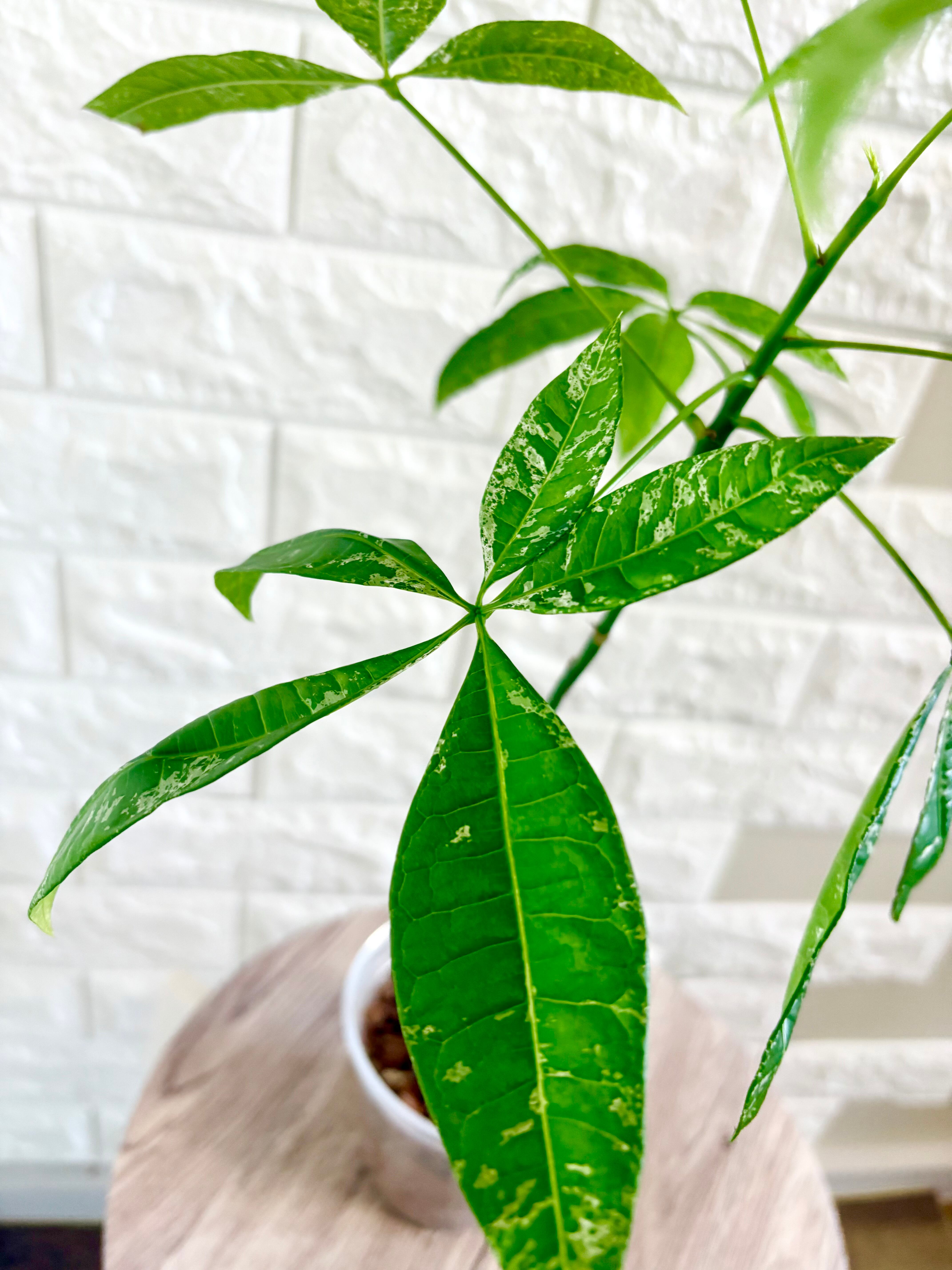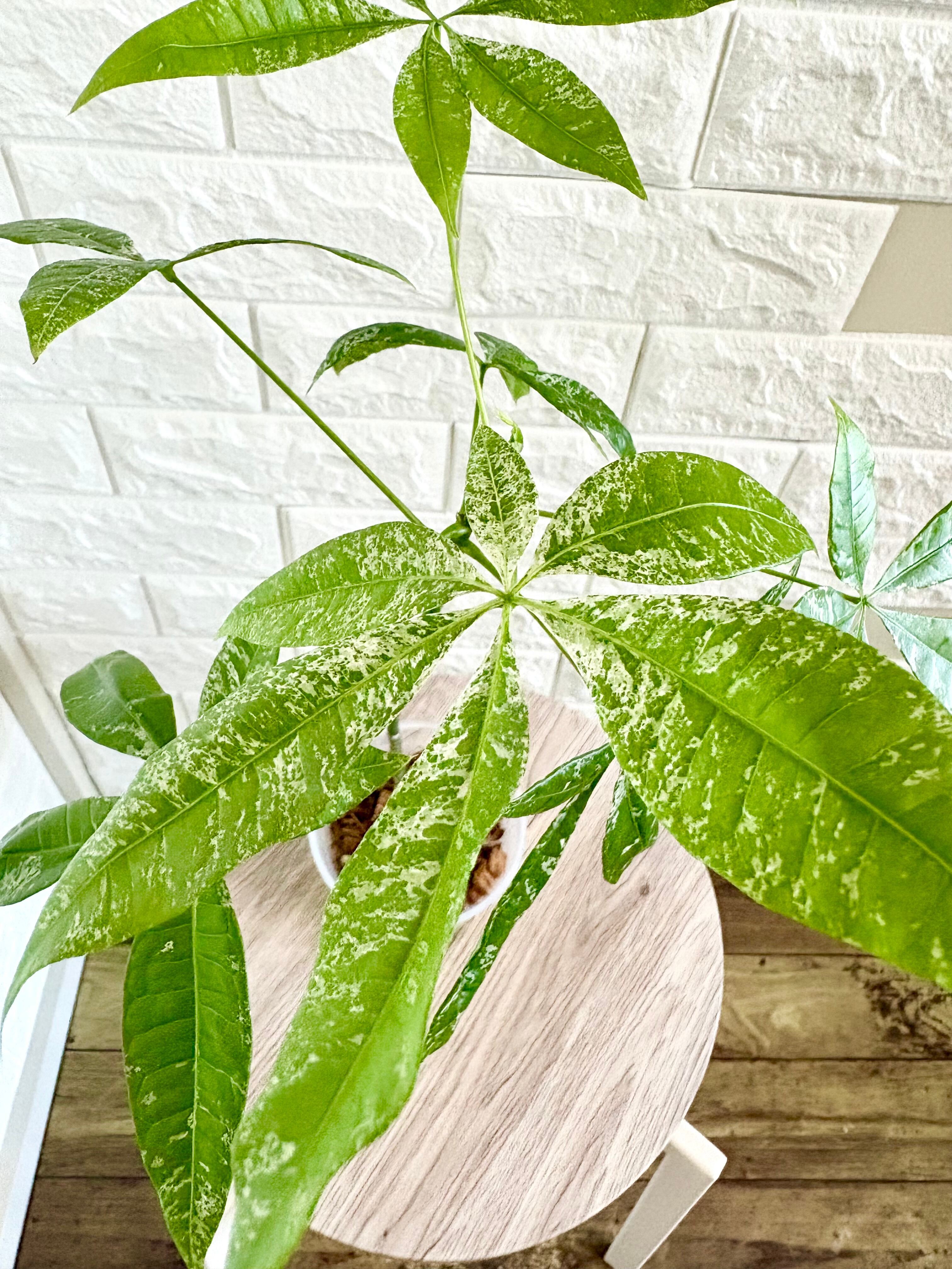 ※緑の葉に白い模様が入った斑入りのパキラは自生する数が少なく、希少な種類です